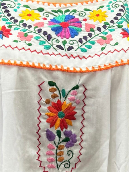 New, handmade midi dress, floral embroidery made by hand 100% by native artisans from Puebla, Mexico.
