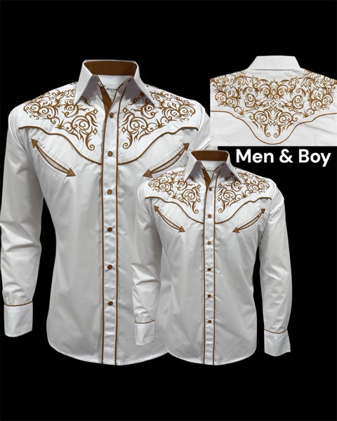 This Texas Cowboy White and Khaki shirt combines classic western style with modern detailing for a standout look. Crafted with a cowboy cut, this long-sleeve button-down shirt offers a flattering fit that moves with you. Embroidered accents on the front and back add authentic character, while matching buttons provide an extra touch of refinement. Perfect for rodeos, casual outings, or adding rustic charm to your wardrobe, this shirt delivers both style and comfort in one versatile piece. Embrace your western spirit and make a confident statement wherever you go. American sizes, true to size.