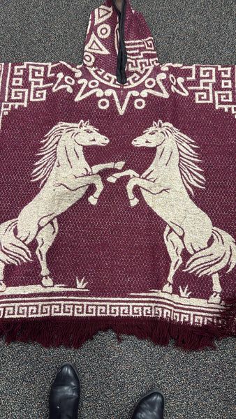 Unisex Mexican Poncho Horses Maroon
